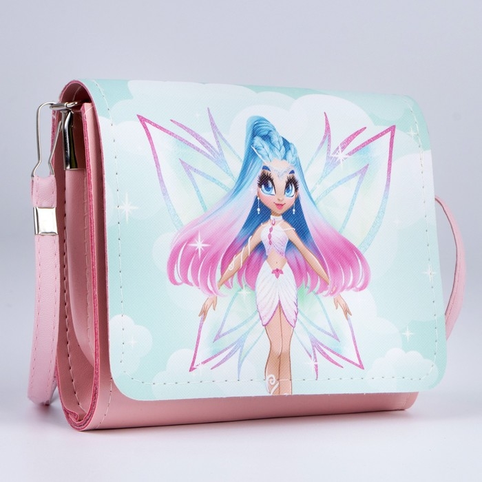 Сумка детская для девочки "Фея", на клапане, цвет розовый/голубой