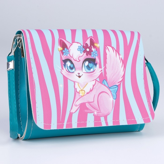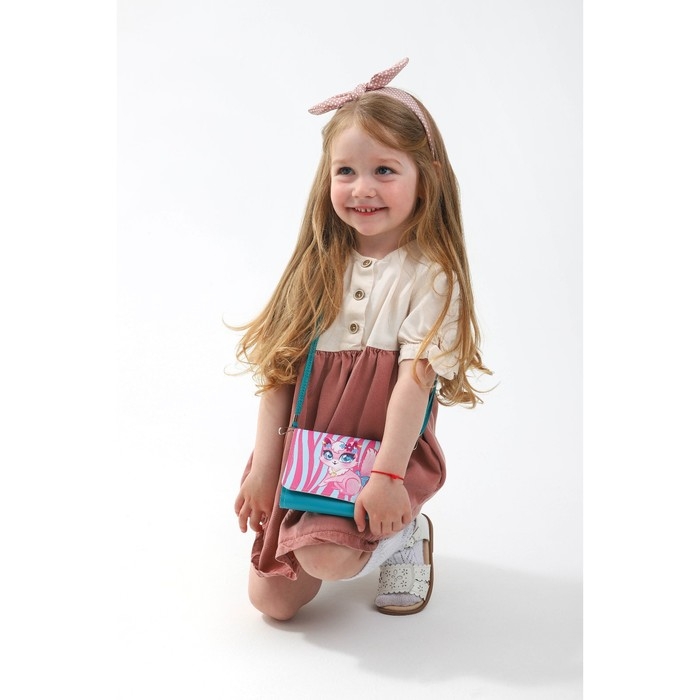 Сумка детская для девочки "Кошечка", на клапане, цвет бирюзовый/розовый