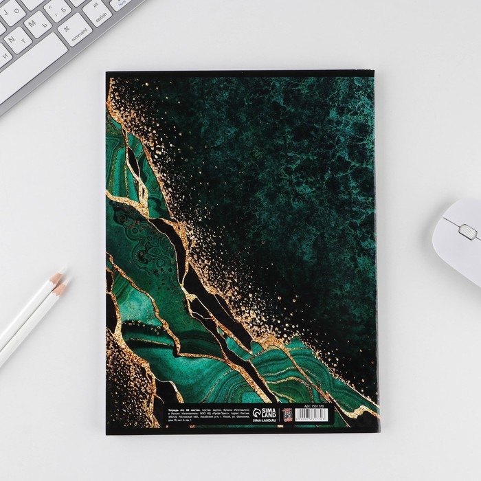Тетрадь в клетку А4, 80 листов на скрепке, «1 сентября: Малахит», обложка мелованный картон 215 гр белизна 96%
