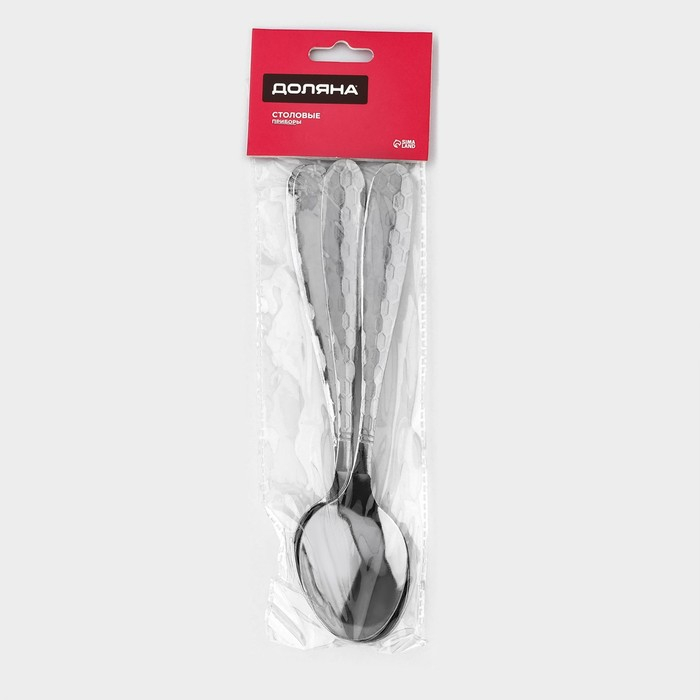 Ложки столовые из нержавеющей стали Доляна «Соты», длина 20 см, толщина 2 мм, 6 шт, цвет серебряный