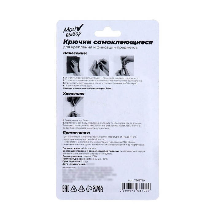 Крючки самоклеящиеся, круглые, с системой бесследного удаления, набор, 2,2 х 2,8 см, 6 шт.
