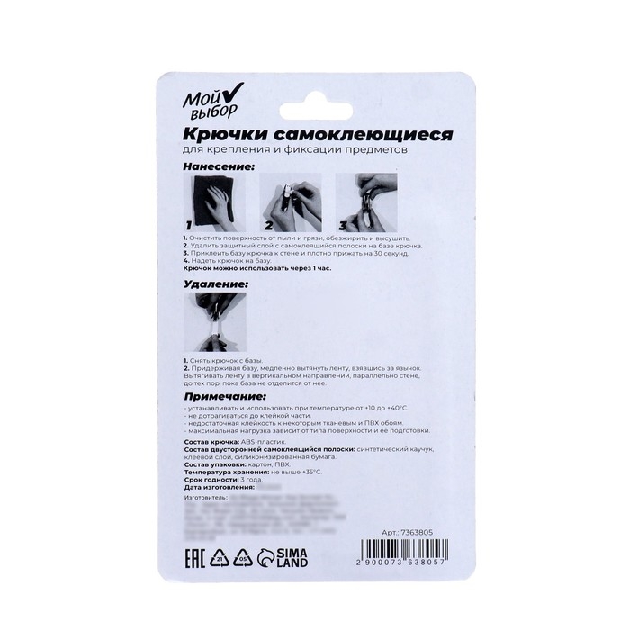 Благодаря системе бесследного удаления, крючки легко крепятся и демонтируются после использования.