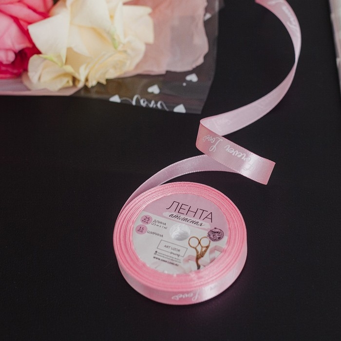 Лента атласная «Forever love», 15 мм × 23 ± 1 м, цвет розовый