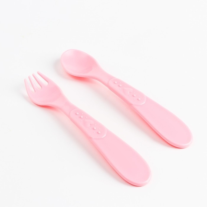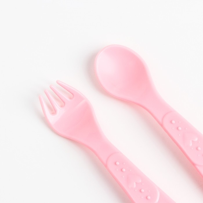 Тарелка детская на присоске, ложка, Крошка Я, цвет розовый