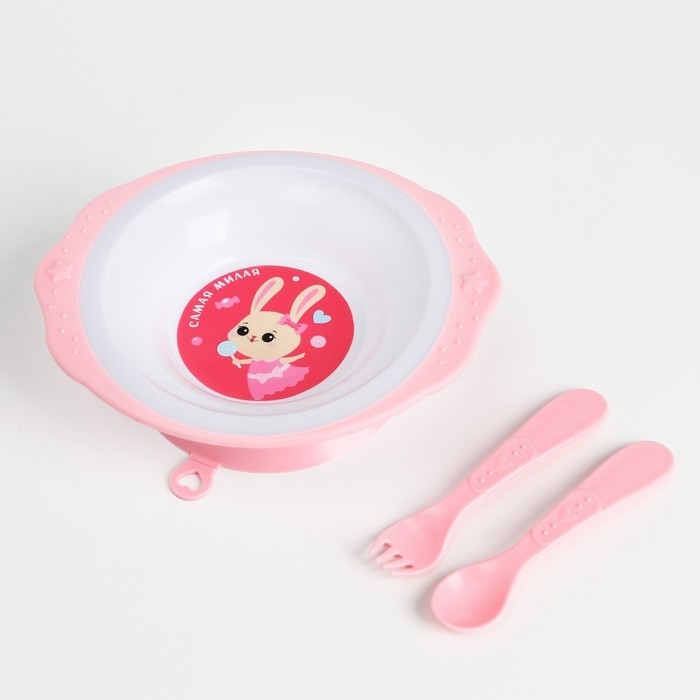 Набор детской посуды «Зайка Полли», тарелка на присоске 250мл, вилка, ложка