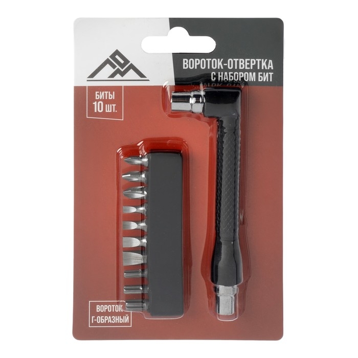 Вороток-отвертка с набором бит ЛОМ, Г-образный, 11 предметов
