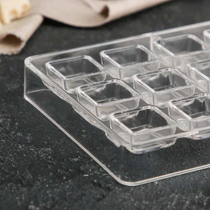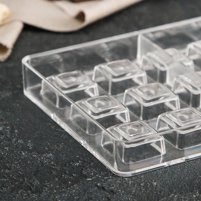 Форма для конфет и шоколада KONFINETTA «Тоффи. Квадрат», 27,5×13,5×2,5 см, 21 ячейка 2,5×1,5 см, цвет прозрачный
