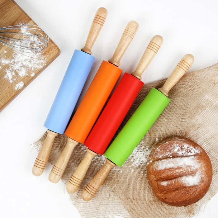 Скалка Доляна «Валенсия», 43×5,5 см, рабочая часть 19,5 см, цвет МИКС