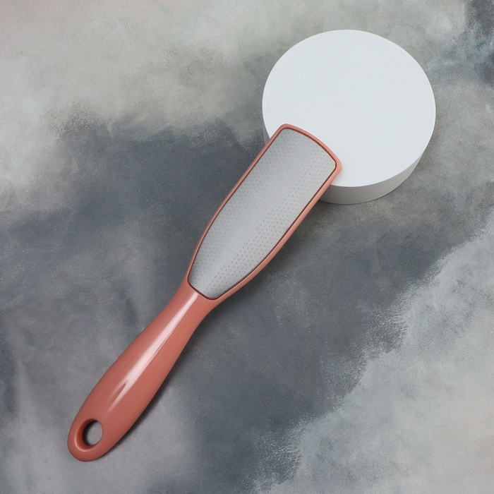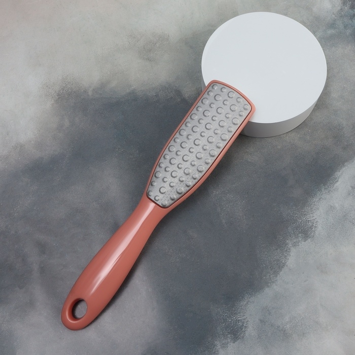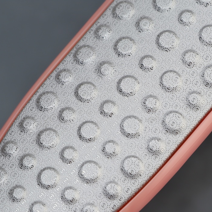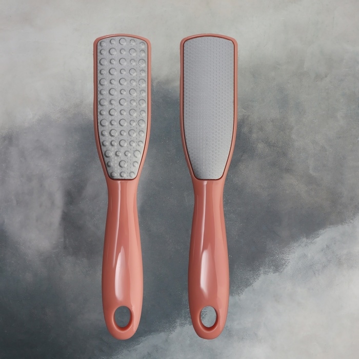 За счёт дизайна, тёркой могут пользоваться не только женщины, но и мужчины. На металлической поверхности с помощью лазера сделаны микрозубчики, которые за 10 пропилов снимут 1 мм огрубевшей кожи. Другая сторона тёрки отполирует уже подготовленный участок до идеального состояния. Проводить такую процедуру можно как на распаренной коже ног, так и на сухой. Комфортную эксплуатацию педикюрного инструмента обеспечит длинная ручка. Между подходами нужно промывать рабочую область в тёплой воде.