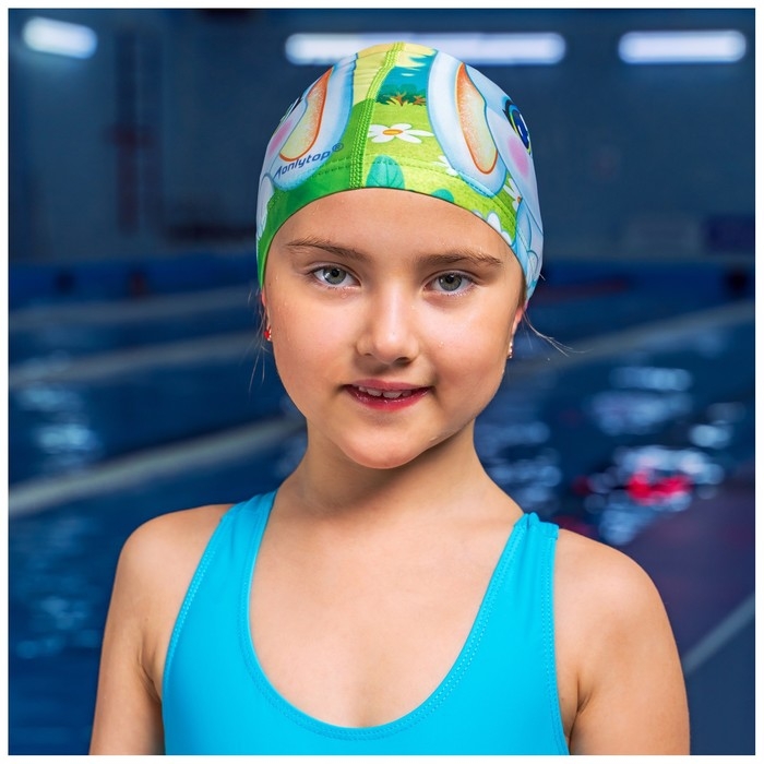 Шапочка для плавания детская ONLYTOP Action, тканевая, обхват 46-52 см