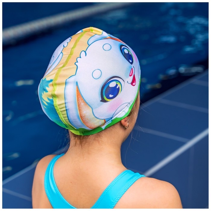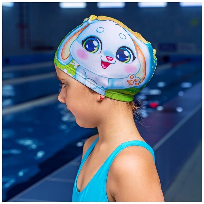 Шапочка для плавания детская ONLYTOP «Зайчонок», тканевая, обхват 46-52 см