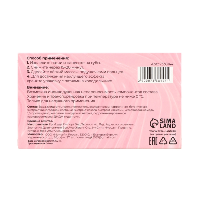 Благодаря своим активным компонентам гидрогелевые патчи для губ прекрасно смягчают тонкую и обветренную кожу, глубоко увлажняют, питают и устраняют шелушения.