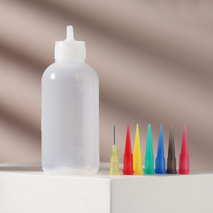 Бутылочка для нанесения краски, со шкалой деления, 50 мл, 7 насадок, цвет разноцветный/прозрачный