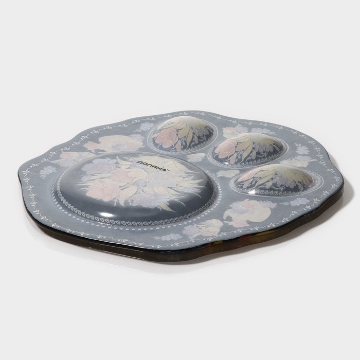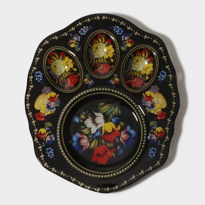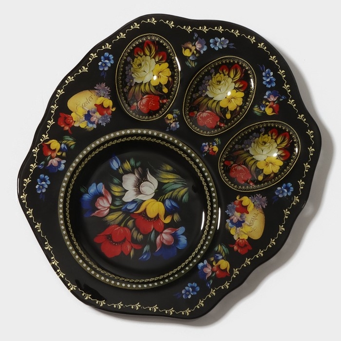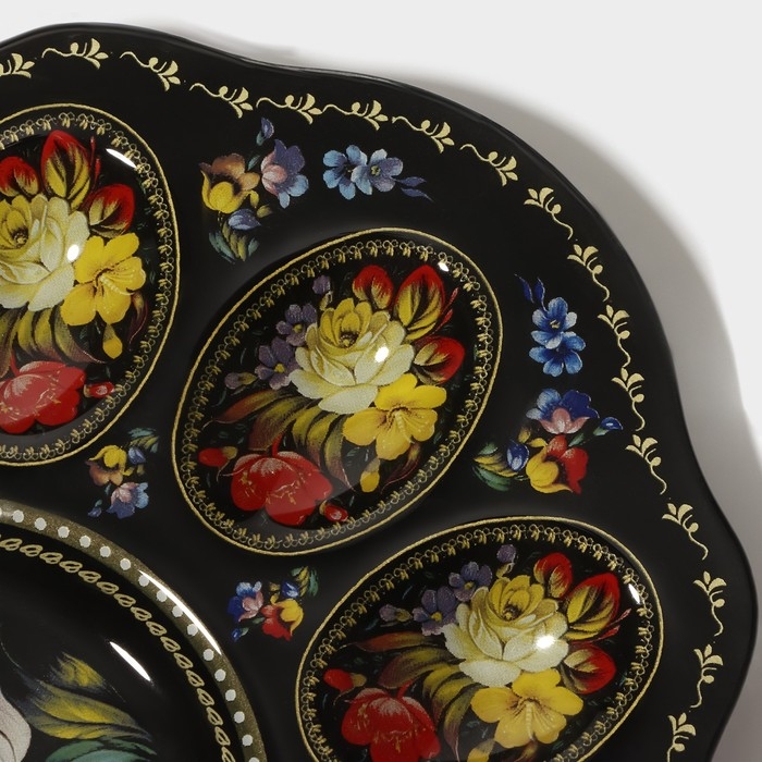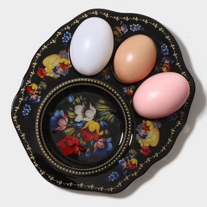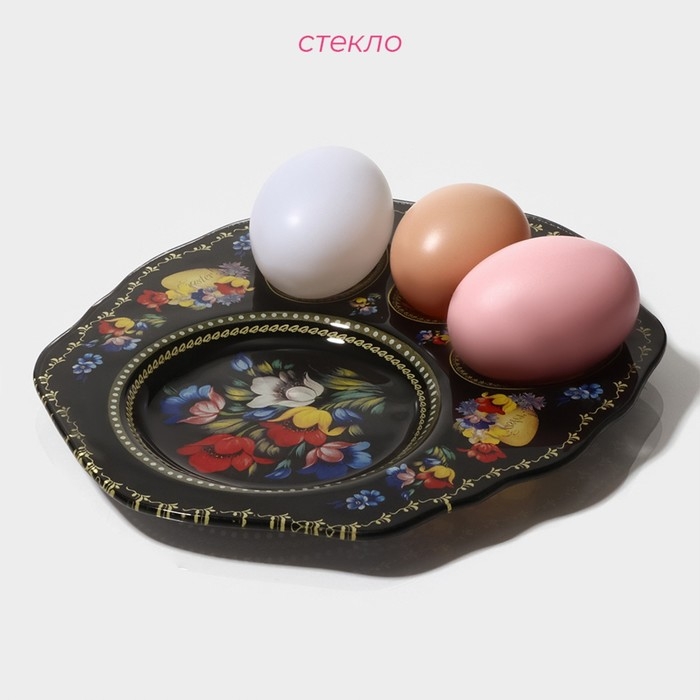 Подставка стеклянная для яиц Доляна «Жостовская роспись», 3 ячейки, 21×18 см, цвет чёрный