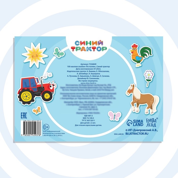 Альбом 100 наклеек «По полям», А5, 12 стр., Синий трактор