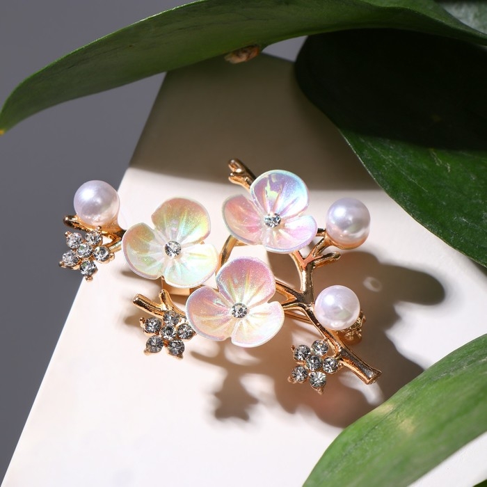 Брошь барокко "Цветы сакуры", цвет белый в золоте