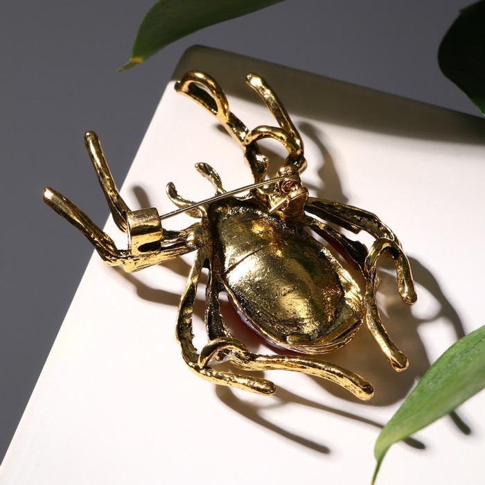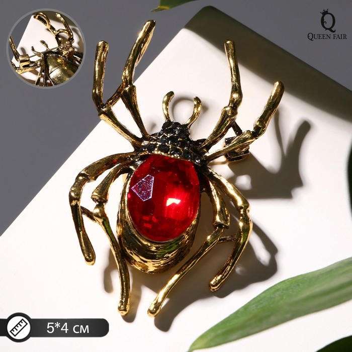 Брошь «Паук», цвет красно-серый в чернёном золоте