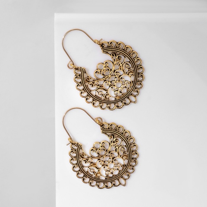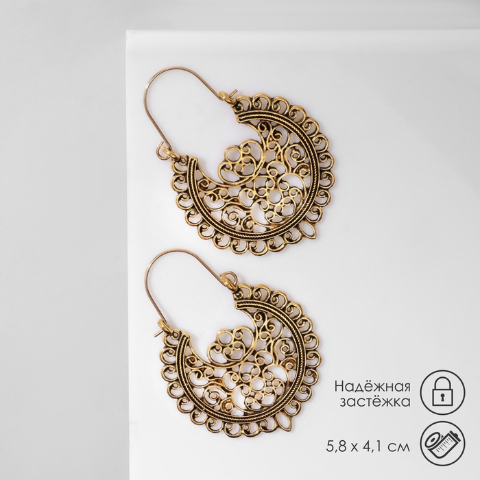 Серьги металл «Восток» узоры, цвет чернёное золото