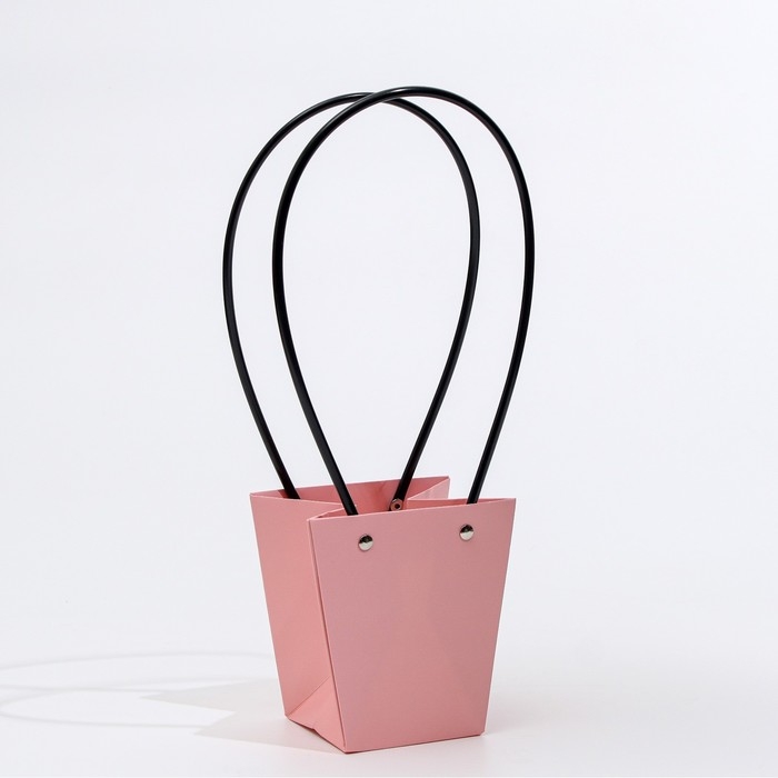 Сумка для цветов розовая влагостойкая, 12x12-8x8-12.5 см