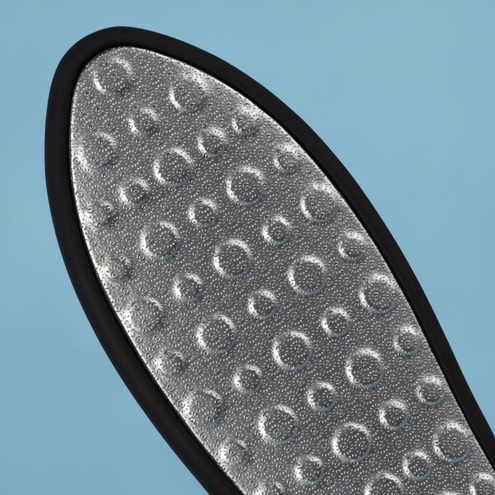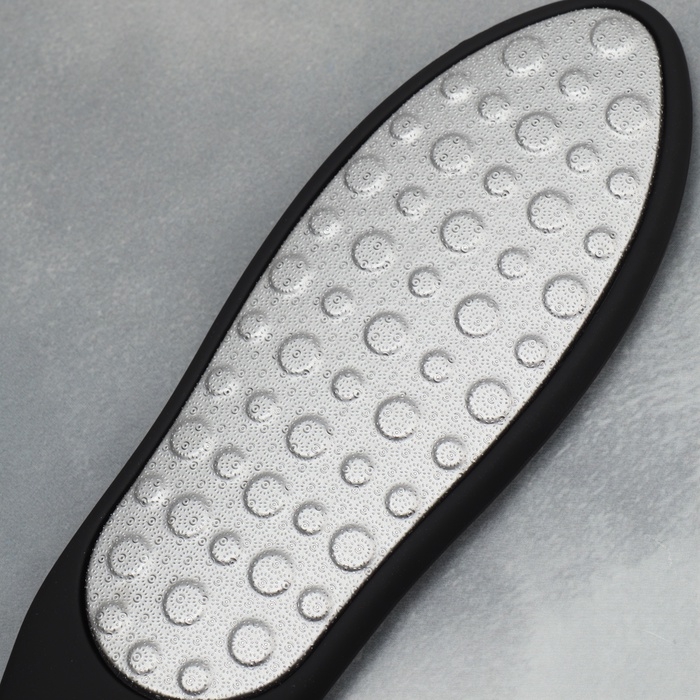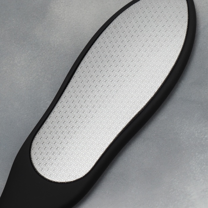 За счёт дизайна, тёркой могут пользоваться не только женщины, но и мужчины. На металлической поверхности с помощью лазера сделаны микрозубчики, которые за 10 пропилов снимут 1 мм огрубевшей кожи. Другая сторона тёрки отполирует уже подготовленный участок до идеального состояния. Проводить такую процедуру можно как на распаренной коже ног, так и на сухой. Комфортную эксплуатацию педикюрного инструмента обеспечит длинная ручка. Между подходами нужно промывать рабочую область в тёплой воде.