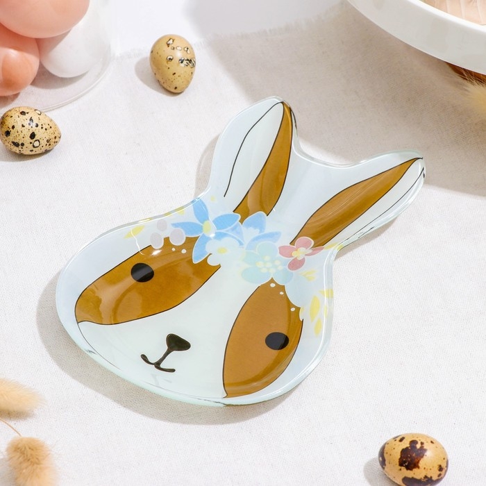 Блюдо стеклянное сервировочное Доляна «Цветочный кролик», 20×13,5 см