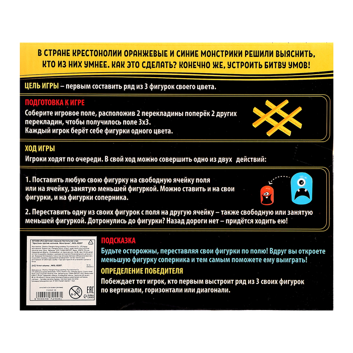 Стратегическая настольная игра на логику «Крестики против ноликов. Монстрики»