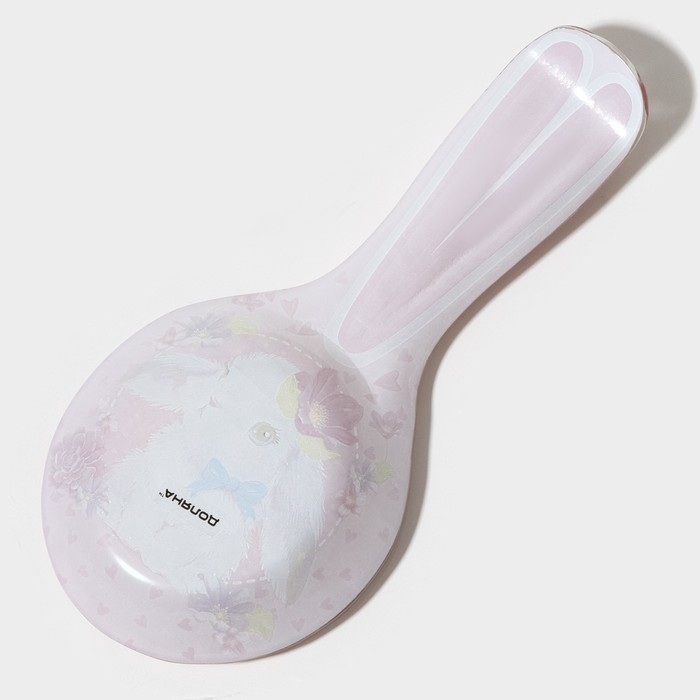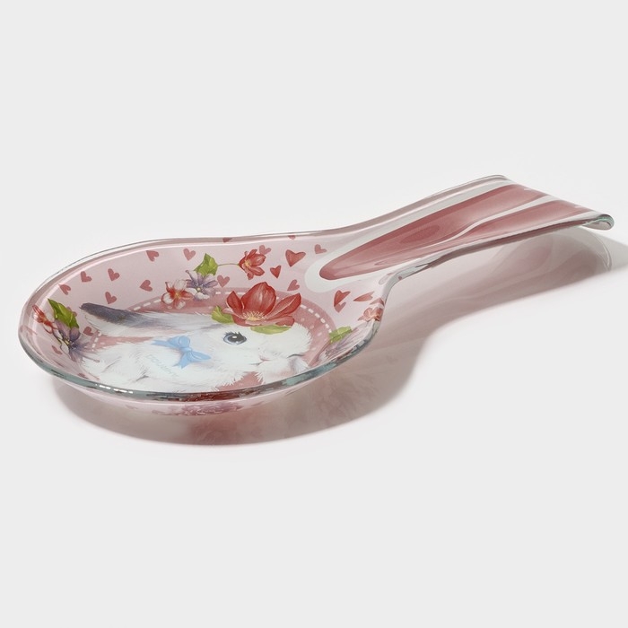 Подставка стеклянная под ложку Доляна «Цветочный зайка», 27×12,5×2 см