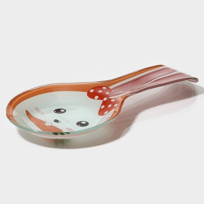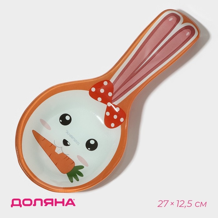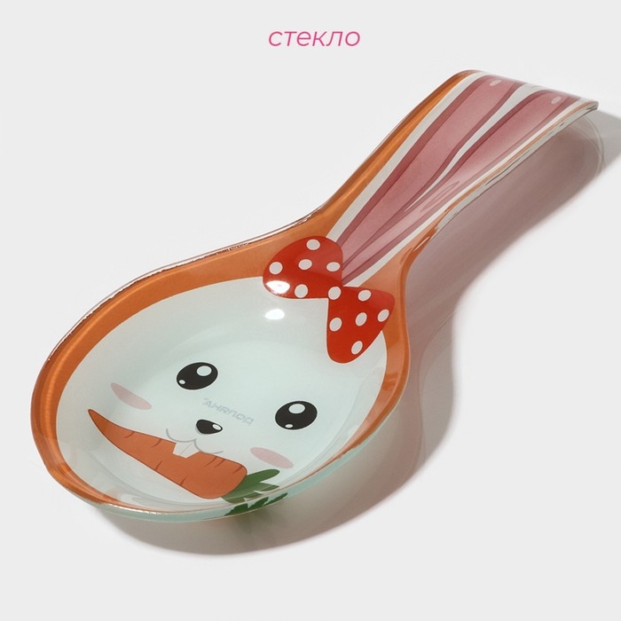 Подставка стеклянная под ложку Доляна «Зайка и морковка», цвет оранжевый