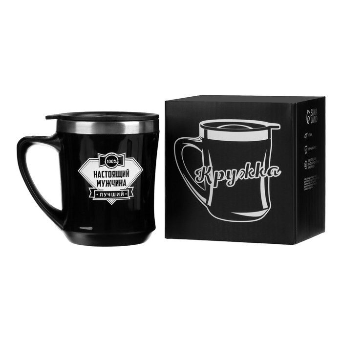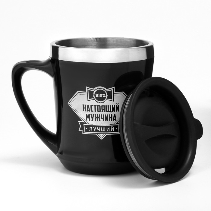 Термокружка, 350 мл, Lifestyle "Настоящий мужчина", сохраняет тепло 3 ч, чёрная