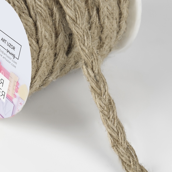 Тесьма декоративная холщовая «Косичка», 6 мм, 9 ± 0,5 м, цвет бежевый