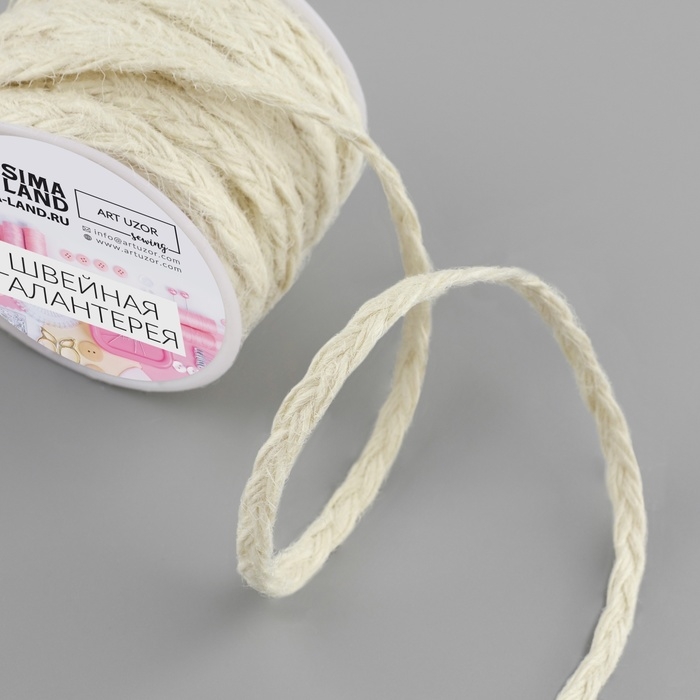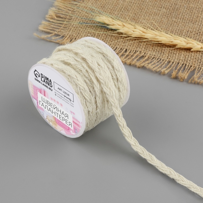 Тесьма декоративная холщовая «Косичка», 6 мм, 9 ± 0,5 м, цвет светло-бежевый