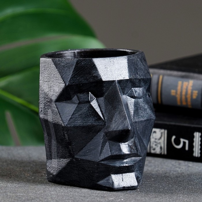 Кашпо - органайзер "Геометрическая голова" черное, 7,5х8,5х7см