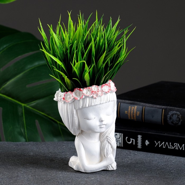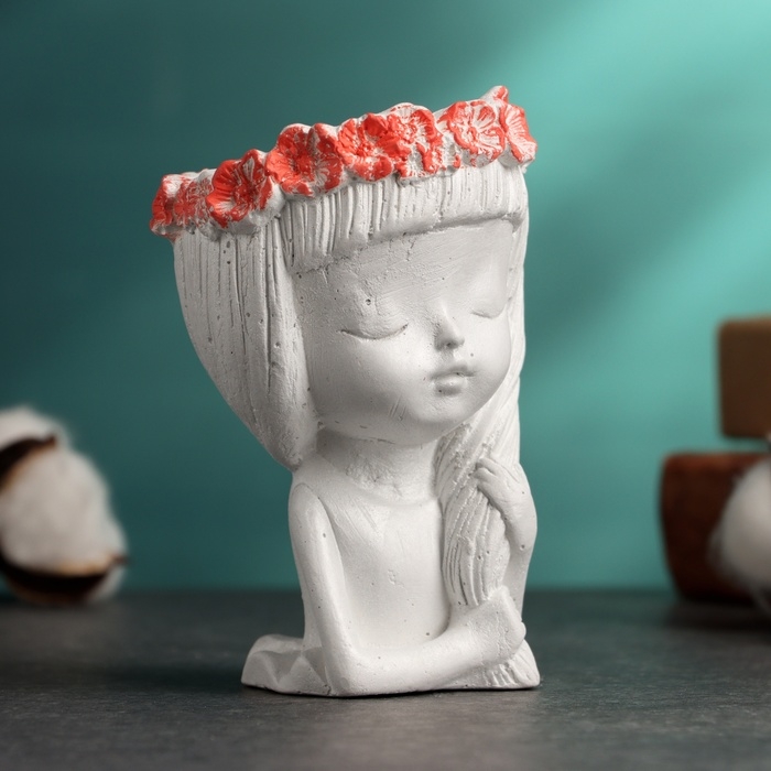 Кашпо - органайзер" Девушка с косой" перламутр, 11х8х8см