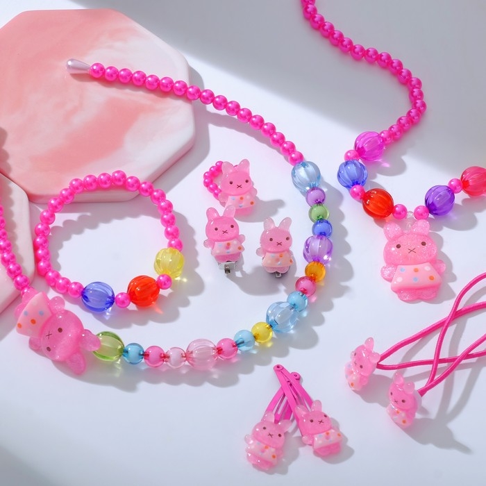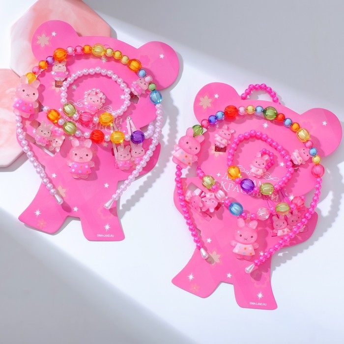 Комплект детский «Выбражулька» 9 предметов: ободок, 2 резинки, 2 заколки, клипсы, кулон, браслет, кольцо, зайчики, цвет МИКС