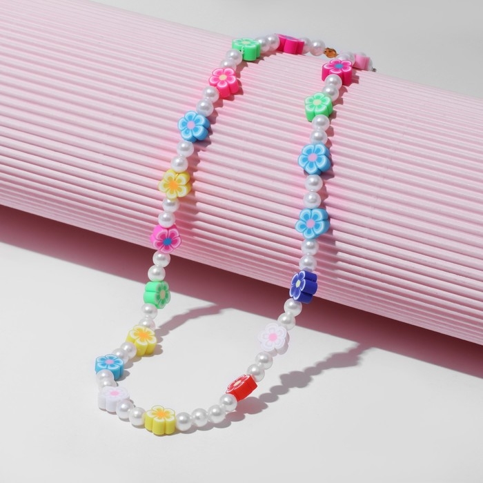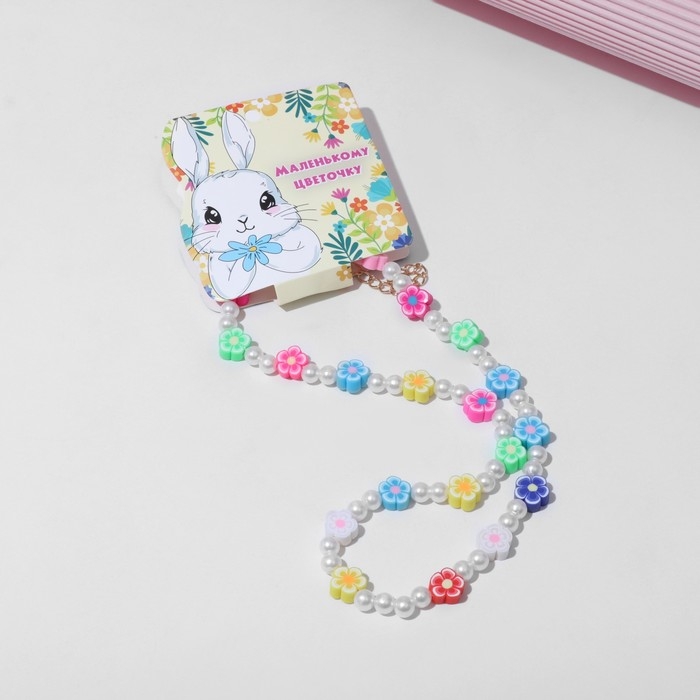Бусы детские «Выбражулька» бусинки и цветочки, цветные, 38 см с удлинителем