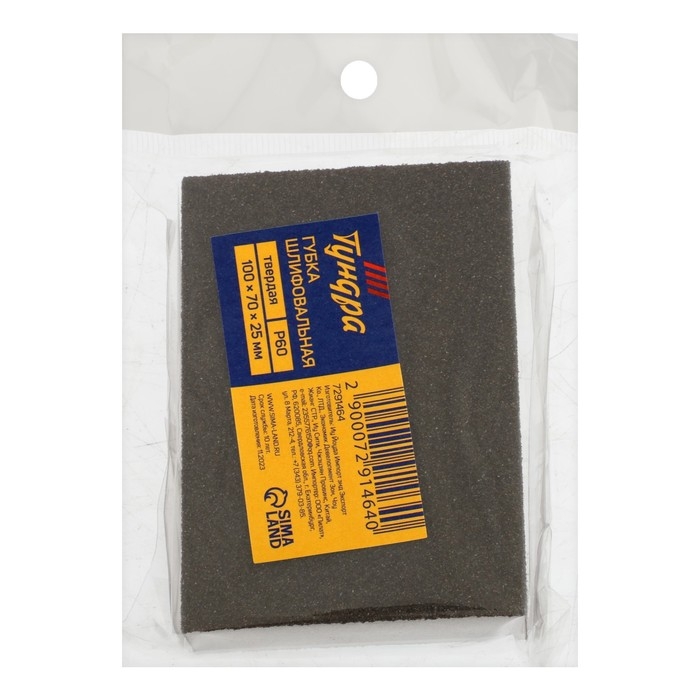 Губка абразивная шлифовальная ТУНДРА, твердая, 100 х 70 х 25 мм, P60