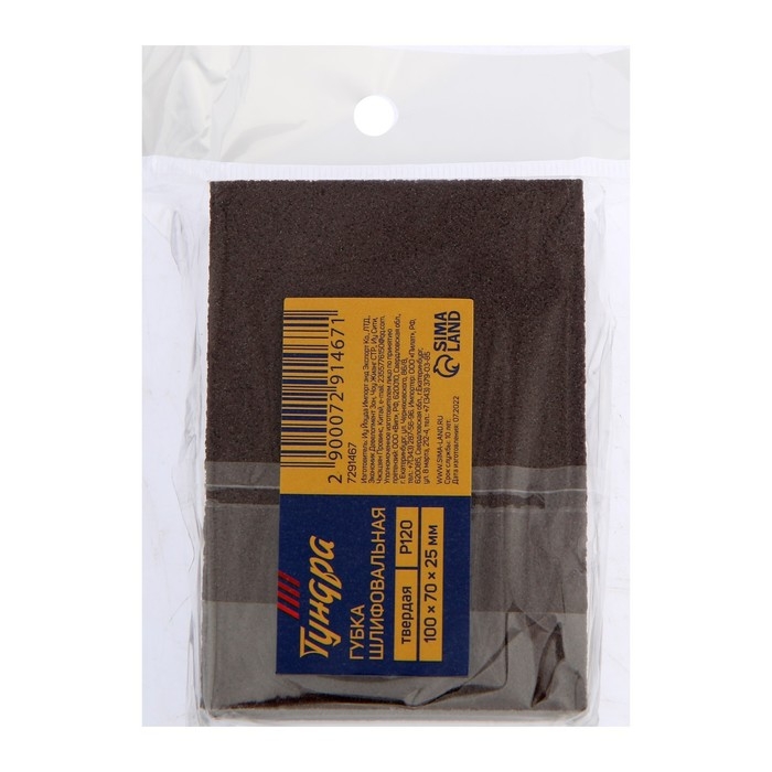 Губка абразивная шлифовальная ТУНДРА, твердая, 100 х 70 х 25 мм, P120