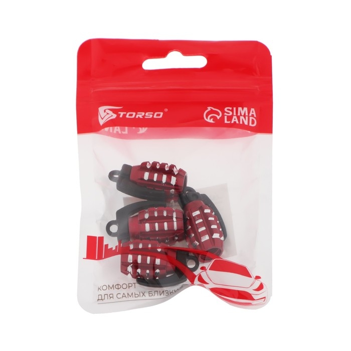 Колпачок на вентиль TORSO, граната, красный, набор 4 шт
