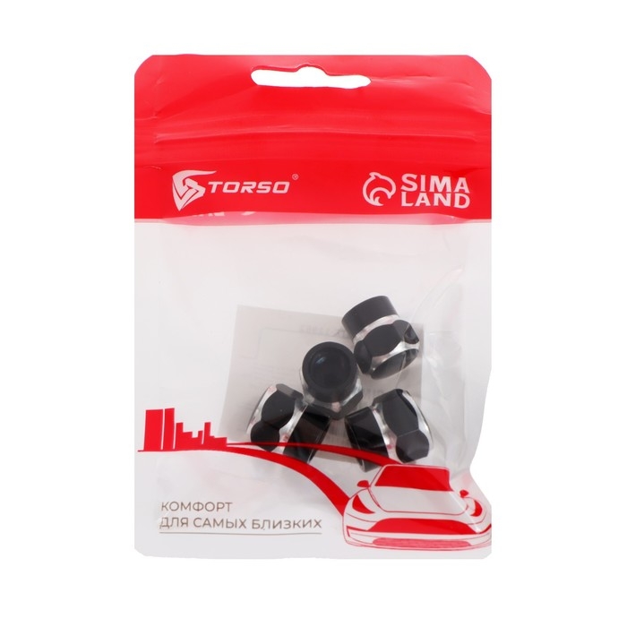 Колпачок на вентиль TORSO, черный, набор 4 шт
