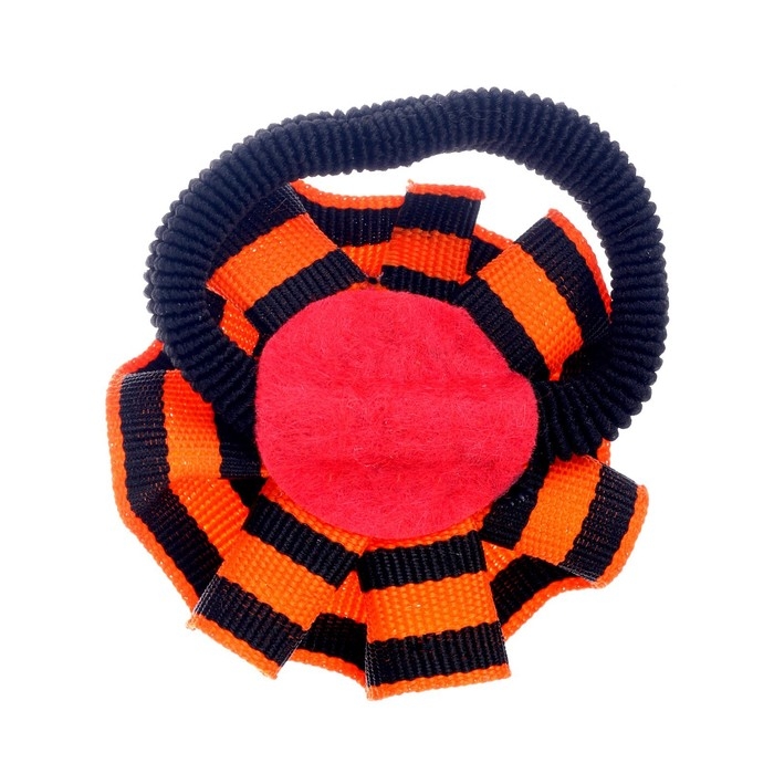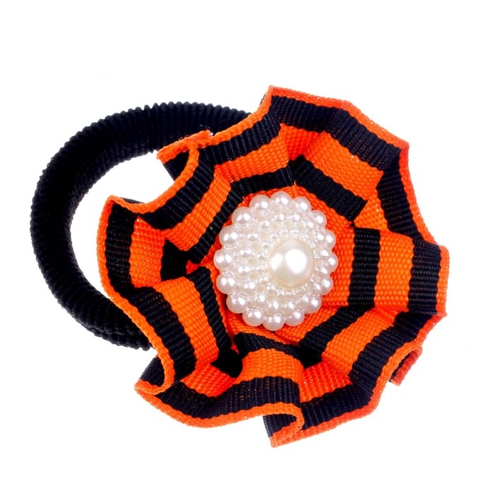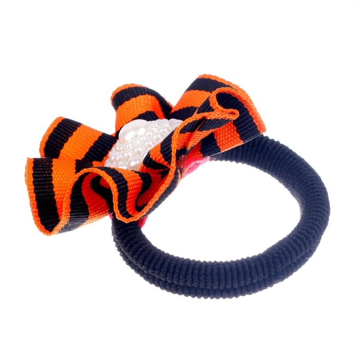 Карнавальная резинка «9 Мая» станет хорошим аксессуаром и поможет собрать волосы в хвостик или косичку.