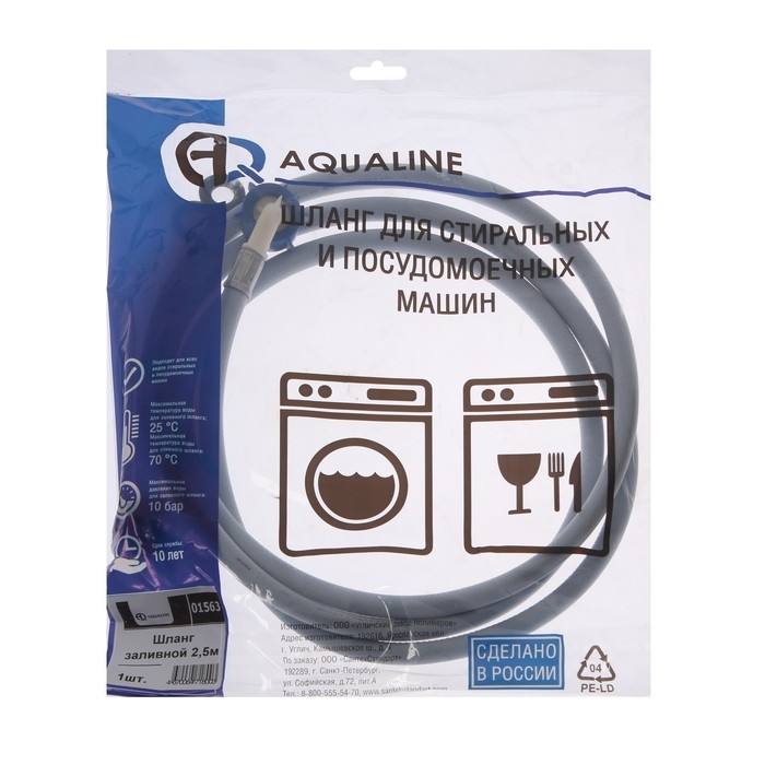 Заливной шланг для стиральной машины AQUALINE 1563, индивидуальная упаковка, 2.5 м