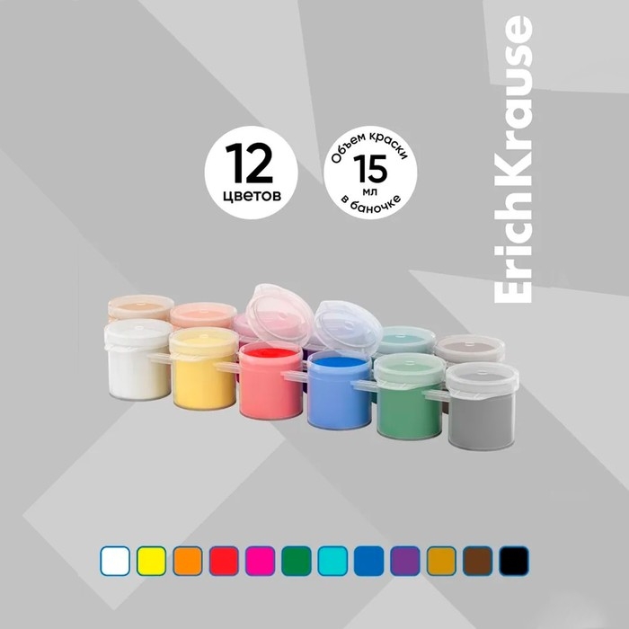 Гуашь 12 цветов х 17 мл, ErichKrause, в картонной упаковке