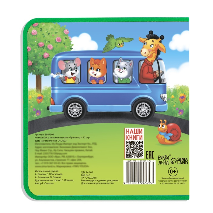 Книжка с мягкими пазлами EVA «Транспорт», 12 стр.
