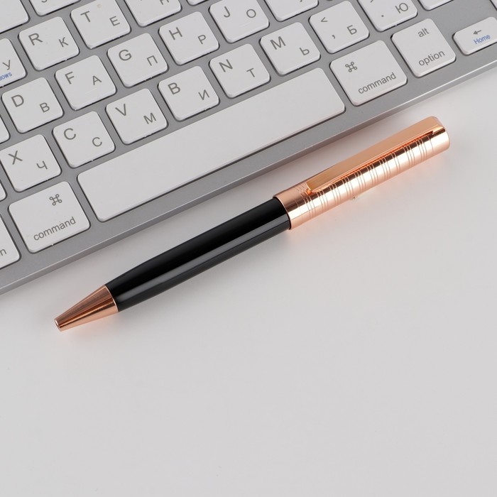 Ручка шариковая синяя паста 0.1 мм, металл рифлёная цвет черный с золотом