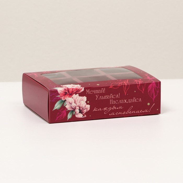 Коробка под 6 шт конфет с окном, весна, бордо 13,7 х 9,85 х 3,8 см