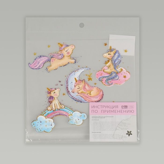 Термотрансфер «Единорожки с блёстками», 19 × 21 см, 5 дизайнов, цена за 1 лист