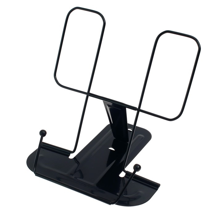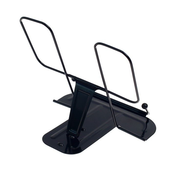 Подставка для книг из прочного металла, несколько уровней наклона, цвет чёрный. Благодаря износостойкому покрытию, подставка будет оставаться в хорошем состоянии долгое время. Держатель, расположенный в нижней части, надежно фиксирует страницы. Упаковка — пакет, европодвес.