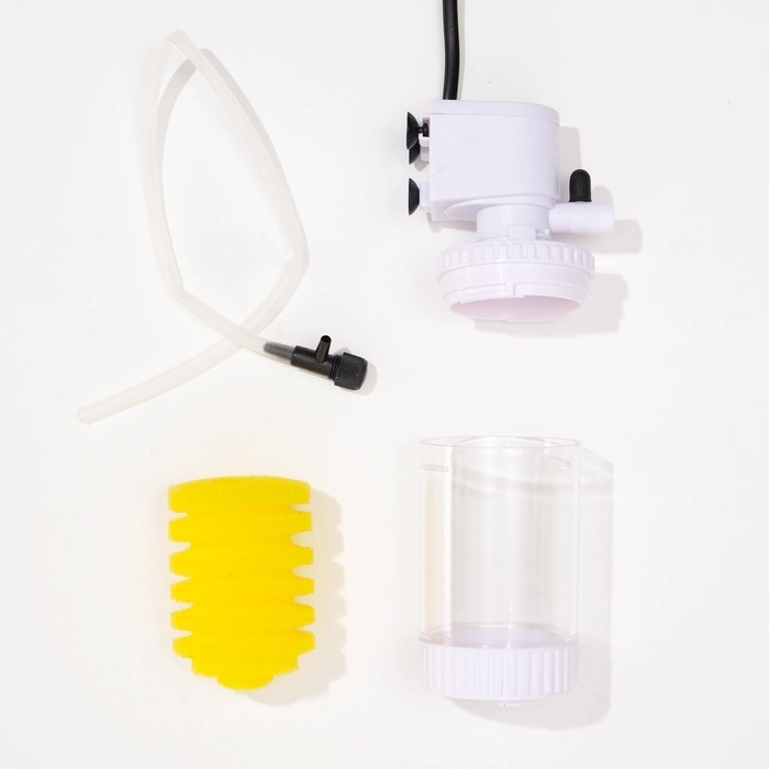 Очищение воды происходит с помощью губки, которая пропускает воду через фильтрующий материал, удаляя из нее загрязнения и остатки пищи.