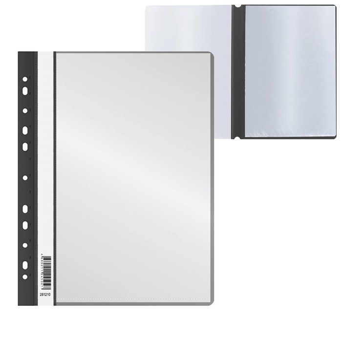 Папка с вкладышами Calligrata с перфорацией, чёрная, содержит 10 вкладышей, которые надежно защищают листы от повреждений.