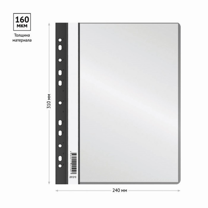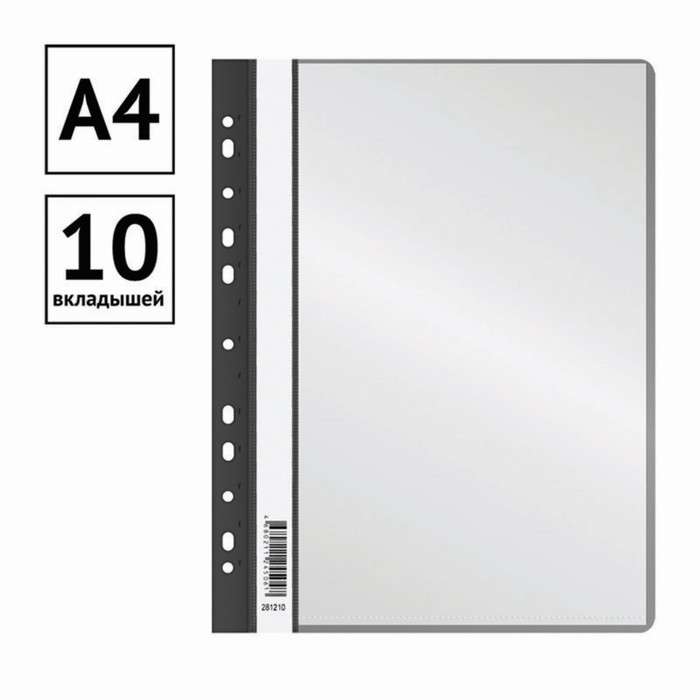 Папка с 10 вкладышами А4, 160 мкм, Calligrata, с перфорацией, чёрная